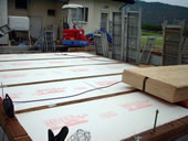 3. 躯体工事の完了床が終了してから柱を建てた上にOSBパネルを全面に貼って、躯体工事の完了です。 |